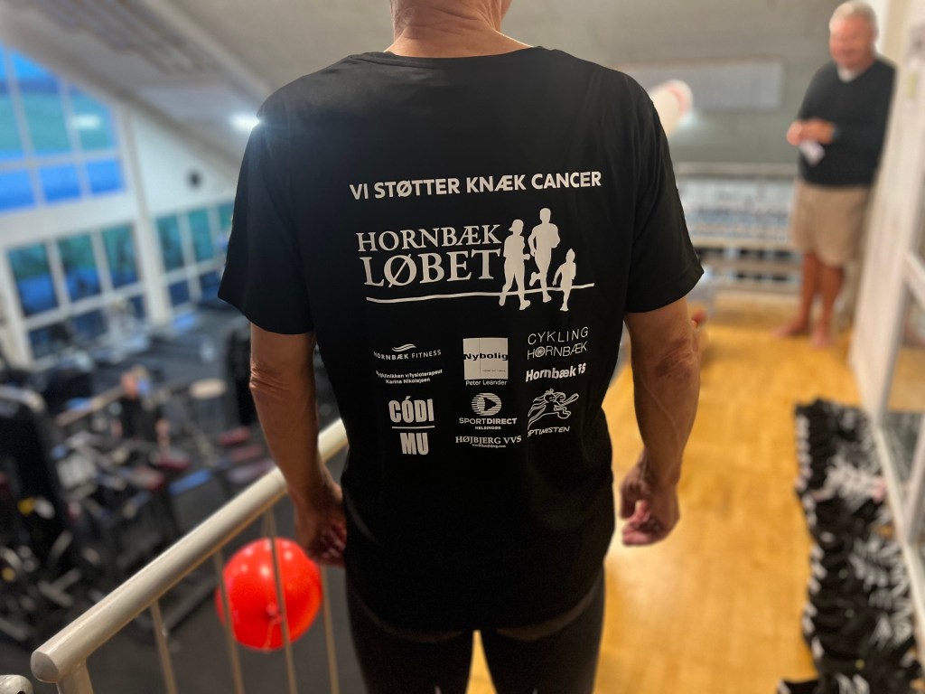 Alle deltagere modtager en gratis T-shirt med Knæk Cancer-logo. Hornbæk Rotary har givet støtte til t-shirt.